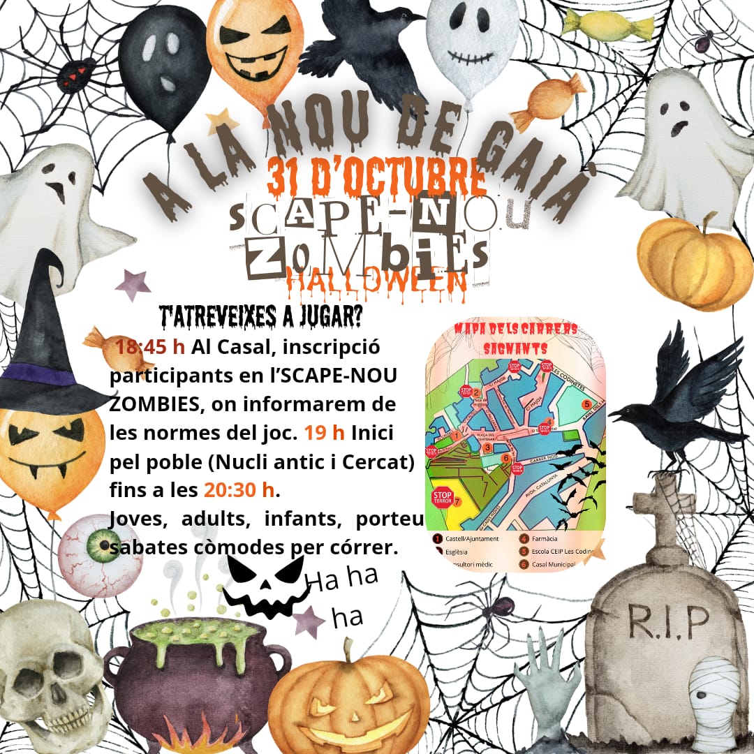 A la tarda, joves, adults i infants, jugarem, si us atreviu ha ha ha! al Scape NOU ZOMBIS, on mitjançant pistes buscarem als zombis per tot el nucli antic i cercat, però aneu amb compte que no us atrapin! Ens ho passarem terroríficament divertit.