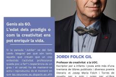 El dramaturg i creatiu Jordi Folck ens desvetllarà com a través de la cretivitat, les persones grans, poden enrriquir la seva vida per convertir-la en una etapa prodigiosa.